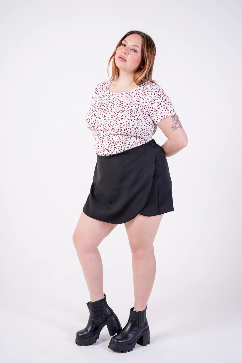 Pollera short clasica. Material sastrero. Medio elástico en cintura. Nuestro must de todas las colecciones, que sea el tuyo también.